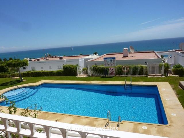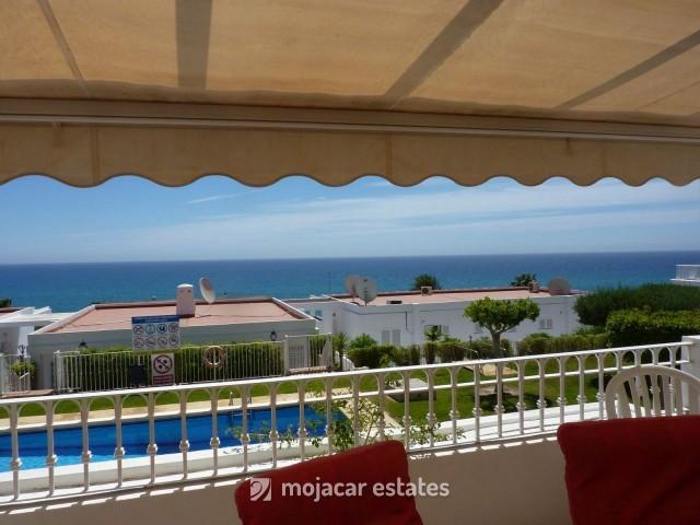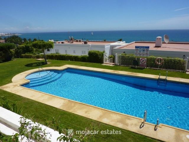Tweede verdieping appartement voor 2 personen met uitstekend uitzicht op zee gelegen in residentieel complex met zwembad en tuinen met uitzicht op het bekende strand van Las Ventanicas in Mojacar playa.