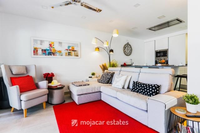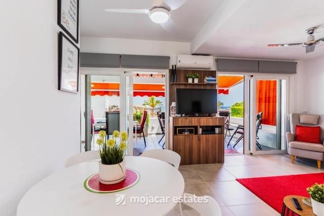 Prachtige, verrassende, moderne luxe 2-slaapkamerwoning met prachtig uitzicht op de Middellandse Zee en rustieke bergen. Op minder dan 100m afstand van het strand & boulevard, populaire bars, restaurants en winkels. Perfecte rustige locatie tweede lijn naar de zee, in een klein beveiligd wooncomplex aan het begin van het prachtige zuidelijke Playa Ventanicas.