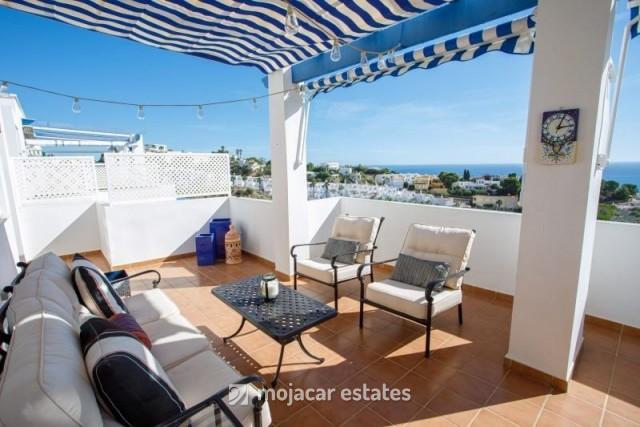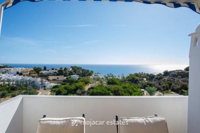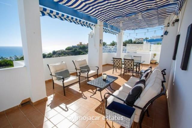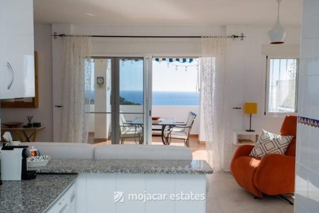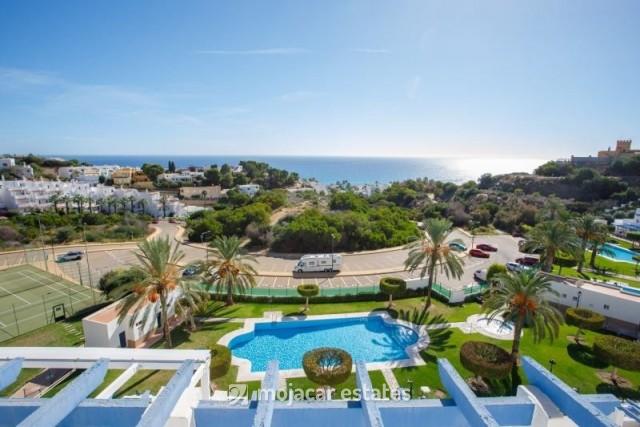 Penthouse-appartement met 3 slaapkamers / 2 badkamers en prachtig uitzicht op zee in Mojácar Playa op een goed onderhouden complex met verschillende zwembaden en een tennisbaan. Het is toegankelijk vanaf de Calle Clara Campoamor vanaf de begane grond of via de Calle Los Atalayones aan de achterkant via de 5e verdieping van het gebouw.